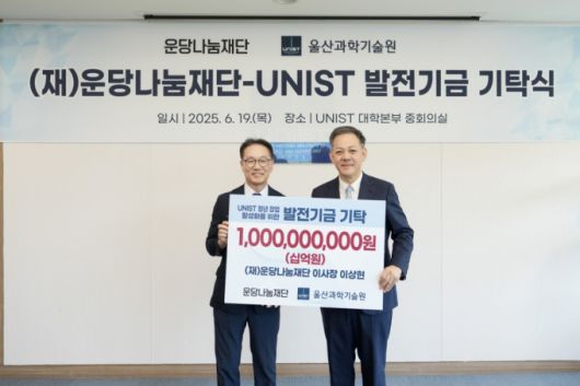 UNIST(울산과학기술원)가 운당나눔재단으로부터 10억원의 발전기금을 기탁받았다.