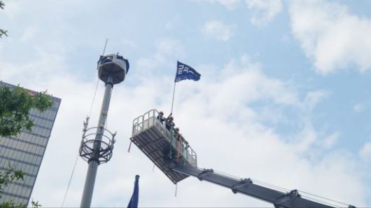 노동권 보장과 단체교섭을 촉구하며 서울 한화 본사 앞 30m 높이 철탑에서 고공농성을 벌였던 금속노조 경남지부 거제통영고성조선하청지회 김형수 지회장이 농성 97일 만에 땅을 밟았다.