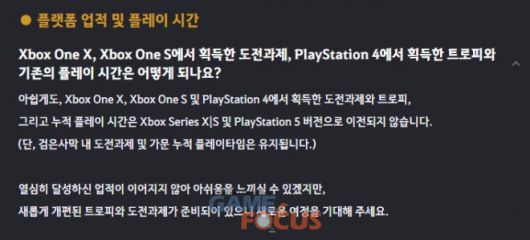 펄어비스는 새로운 버전을 내며 업적(플레이스테이션의 경우 트로피) 내용도 새롭게 구성해 별개의 트로피 세트로 재등록했다. 단순 그래픽 업그레이드 수준이 아닌, 최신 하드웨어 버전을 만들며 제대로 공을 들여 새로운 버전을 만들었다는 것을 보여주는 상징적 행보라 할 수 있을 것 같다.