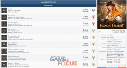 19일에는 펄어비스가 준비한 플레이스테이션5 버전 트로피 셋 내용이 공개됐다.