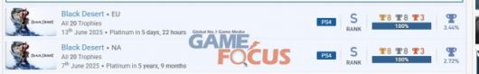 여담이지만 새 버전이 나와도 트로피가 그대로일 것이라 예상했던 트로피 헌터들은 서버 종료 소식에 '검은사막' 플레이스테이션4 버전을 마무리하기 위해 맹렬히 플레이중인데, 사실 기자 역시 과거 플레이하다 마무리하지 않았던 국내 정식 발매 버전 '검은사막'(북미 버전)은 물론 유럽 버전까지 구입해 서버 종료 전에 간신히 마무리할 수 있었다.