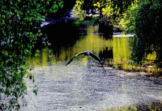 버드나무 숲 사이로 흐르는 여의도샛강생태공원에서 왜가리 한 마리가 먹이를 기다리고 있다. 왕태석 기자 |