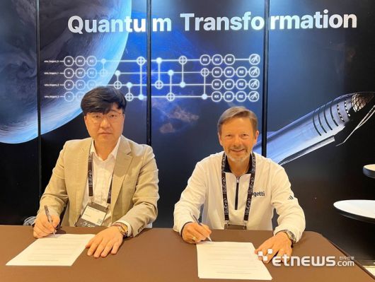 정현철 노르마 대표(사진좌측)와 마이크 피치 리게티 컴퓨팅 부사장이 지난 5월15일 'Q2B 도쿄 2025'에서 양자 컴퓨터 기술협력을 골자로 하는 양해각서(MOU)를 교환했다. |
