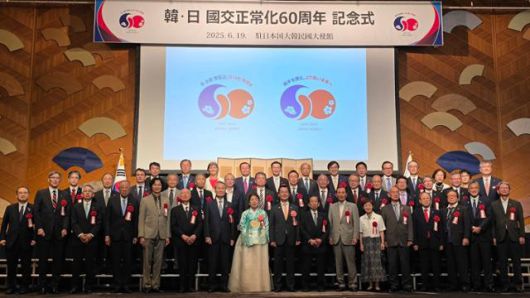 한국과 일본 각계각층 인사들이 19일 한일 국교 정상화 60주년을 맞아 도쿄에 모여 "더 나은 미래를 만들기 위한 책임을 다하자"며 한일관계 발전의 염원을 담아 각오를 다졌다. 이시바 시게루 일본 총리가 직접 참석해 이재명 대통령과 약속한 '한일 협력 강화' 실현 의지를 거듭 강조했다.