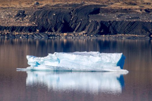 과학탐사선 ‘카막’이 2023년 8월 15일(현지시간) 그린란드 동부 스코츠비 사운드 피오르드의 밀른 랜드 주변 빙하에서 방출된 빙산 사이를 항해하고 있다. AFP 연합뉴스 |
