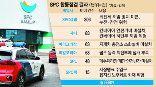 SPC삼립 시화공장 사망 사고에 대한 경찰 수사가 진행 중인 가운데 SPC가 그룹 내 모든 생산센터(공장)를 대상으로 자체 진행한 안전점검 결과, 총 568건의 미흡 사항이 확인됐다. 문제의 시화공장도 이번 합동안전점검에 포함돼 함께 조사를 받았다. 총 568건 가운데 341건은 개선 조치가 완료됐으며, 나머지 미흡 사항은 늦어도 다음달까지는 개선한다는 방침이다.