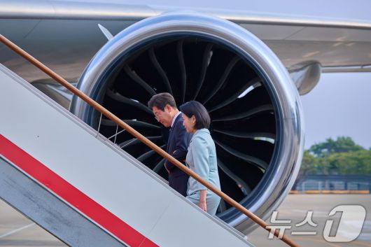 (서울=뉴스1) 박지혜 기자 = 대통령실은 이재명 대통령과 부인 김혜경 여사가 주요7개국(G7) 정상회의 참석을 위해 지난 16일 오후 경기도 성남 서울공항을 통해 출국하는 모습을 19일 SNS를 통해 공개했다. (이재명 대통령 SNS. 재판매 및 DB 금지) 2025.6.19/뉴스1