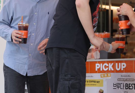 지난 9일 서울 여의도에서 직장인들이 아메리카노를 사 마시고 있다. 질병관리청이 발표한 ‘최근 5년간(2019∼2023년) 우리 국민의 음료 섭취 현황’을 보면 20대 이상 모든 연령대가 가장 많이 마신 음료는 아메리카노다. 연합뉴스 |