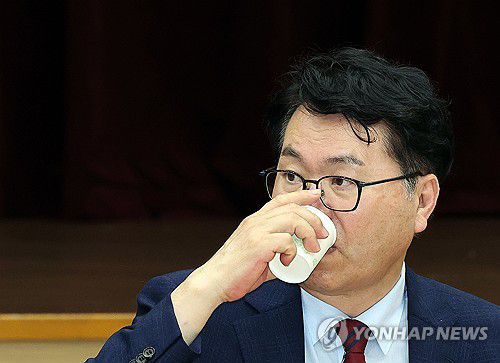목 축이는 이한주 위원장 |