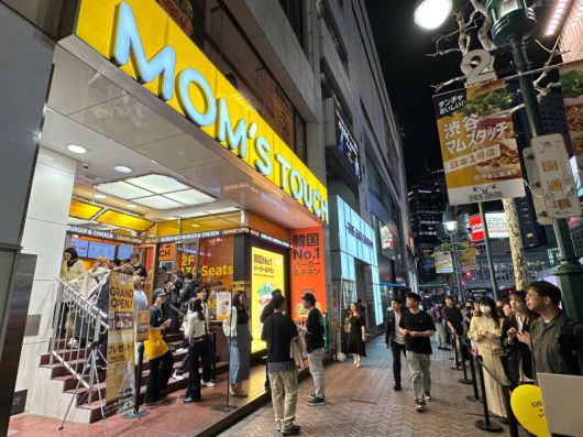 시부야 맘스터치 1호점에 들어가기 위해 고객들이 줄을 서고 있다. 사진=김경민 도쿄특파원 |