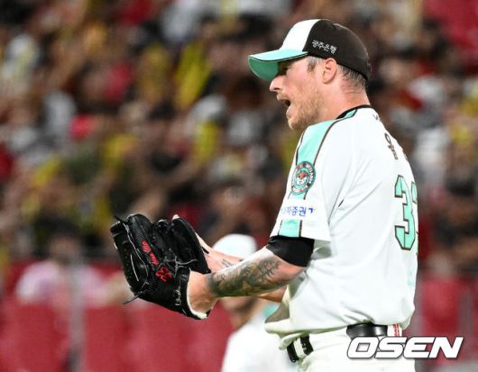 [OSEN=광주, 이대선 기자] 19일 오후 광주-기아 챔피언스필드에서 2025 신한 SOL Bank KBO리그 KIA 타이거즈와 KT 위즈의 경기가 열렸다. KIA는 올러, KT는 배제성을 선발 투수로 내세웠다. 6회초 2사에서 KIA 올러가 KT 권동진을 삼진으로 처리하고 환호하고 있다. 2025.06.19 /sunday@osen.co.kr