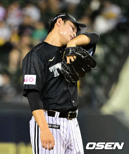 [OSEN=잠실, 지형준 기자] 19일 오후 서울 잠실구장에서 ‘2025 신한 SOL Bank KBO리그’ LG 트윈스와 NC 다이노스의 경기가 열렸다. LG는 최채흥, NC는 신민재를 선발로 내세웠다 7회초 2사 만루에서 LG 김영우가 NC 박민우에 2타점 우전 적시타를 허용하며 아쉬워하고 있다. 2025.06.19 /jpnews@osen.co.kr