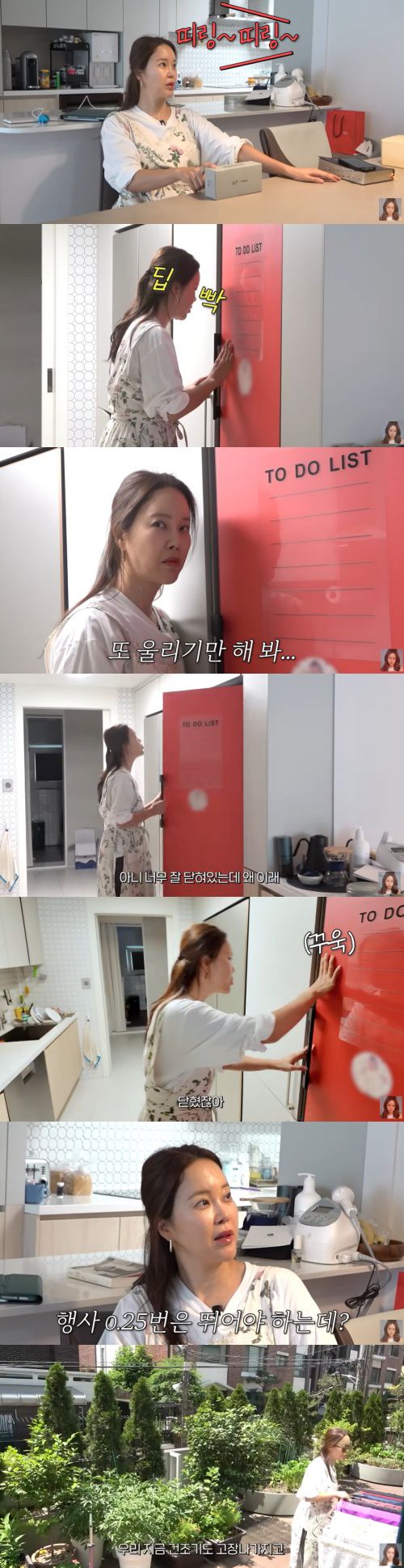 그러나 냉장고의 경고음은 계속 울렸고, 백지영은 "저거 A/S 불러야겠다. 얼마 전에도 안 쪽이 밤 사이 녹아있었다"며 걱정했다. 이후 또 다시 경고른 "띠링~"이 들렸고, 백지영은 "너무 잘 닫혀 있는데 왜 이래? 이게 왜 깜빡 거리지? 다른 촬영보다 A/S 접수부터 해야겠다"며 곧바로 고객센터에 전화를 걸었다.