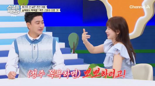 이를 들은 송진우는 "옆에서 잘 때 계속 술 냄새나고"라며 장난을 쳤고, 이혜원은 "정종 목욕을 하면 안정환이 (술 냄새에 매료돼) 자꾸 뽀뽀를 하려고 한다"고 해 눈길을 끌었다.