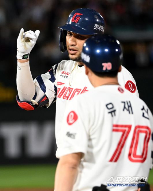 19일 부산 사직야구장에서 열린 한화와 롯데의 경기, 7회말 1사 2루 롯데 레이예스가 1타점 적시타를 치고 있다. 부산=허상욱 기자wook@sportschosun.com/2025.06.19/