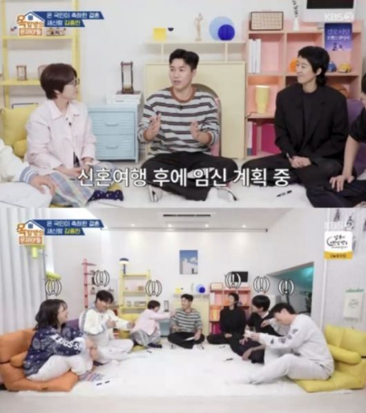 김종민은 아이를 갖기 위해 노력하겠다면서 "몸 관리를 할 거다. 건강 관리, 금주, 숙면을 취할 거다"라며 "신혼여행 갔다 오자마자 병원부터 갈 것"이라고 말해 훈훈함을 자아냈다.