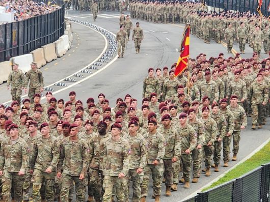 지난 14일(현지시각) 미국 워싱턴 DC에서 열린 미국 육군 창설 250주년 기념 열병식에서 병사들이 대열을 형성한 채 지나가고 있다. 한국군도 다문화 장병의 증가에 발 맞춰 다문화 군 정책을 새로 수립해야 한다는 지적이 나오고 있다. /연합뉴스 |