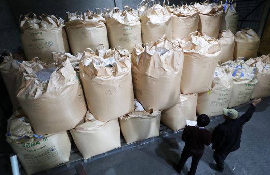 2023년 3월 대전 중구 서대전농협 공공비축미 보관창고에 쌓여 있는 벼./신현종 기자 |