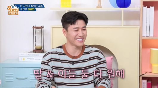 이날 김종민은 자녀 계획에 대해 "두 명 정도 계획 중"이라며 "딸, 아들을 원한다"고 말했다.