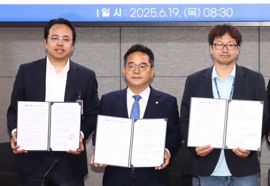 김범석 우아한형제들 대표, 민병덕 더불어민주당 을지로위원회 위원장, 김진우 전국가맹점주협의회 의장(왼쪽부터)은 19일 배달앱 수수료 중간 합의문을 발표했다. [뉴스1] |