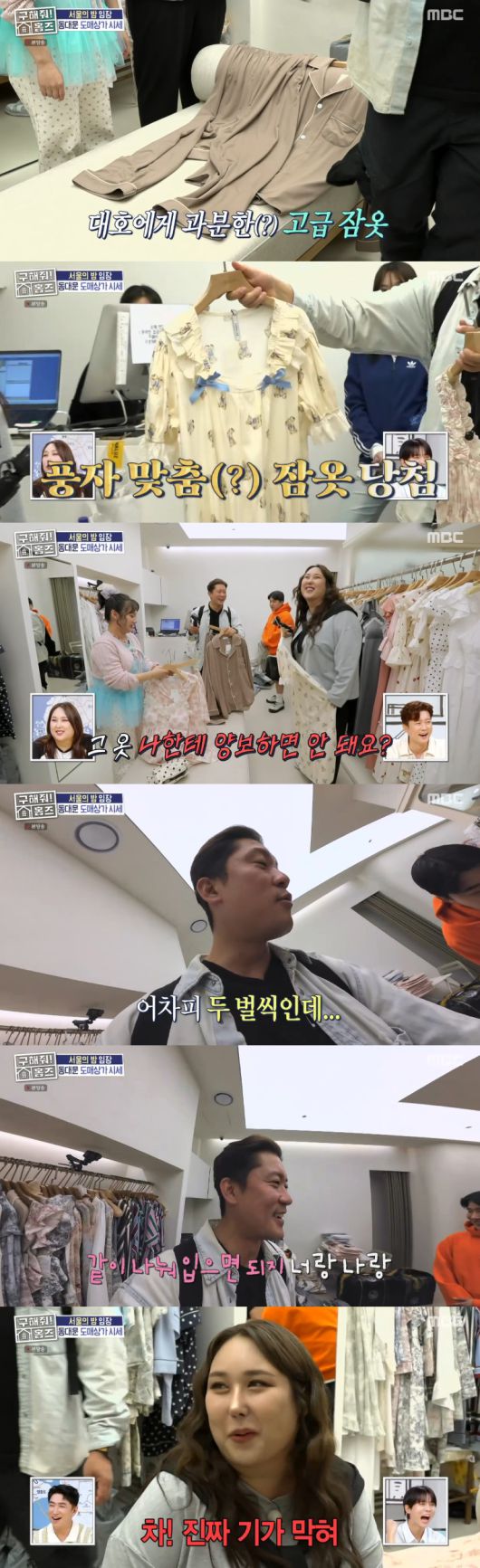 그렇게 '동대문 임장 기념 잠옷 임장'이 즉석에서 진행됐고, 김대호가 박나래와 풍자의 잠옷을, 두 사람이 김대호의 잠옷을 고르는 방식으로 쇼핑이 시작됐다.