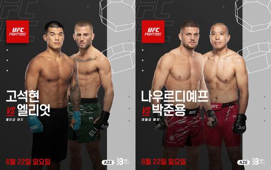 고석현과 박준용이 출전하는 ‘UFC 파이트 나이트: 힐 vs 라운트리 주니어’는 22일 오전 3시부터 tvN SPORTS와 온라인동영상서비스(OTT) 티빙(TVING)을 통해 중계된다.