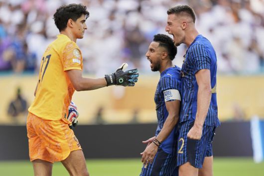 막았다! 알힐랄(사우디아라비아) 골키퍼 야신 부누(왼쪽)가 19일 열린 레알 마드리드(스페인)와의 2025 FIFA 클럽월드컵 조별리그 H조 1차전에서 후반 42분 페데리코 발베르데(우루과이)의 페널티킥을 막아낸 뒤 환호하고 있다. 1-1 무승부를 기록한 알힐랄은 승점 1을 따냈다. 마이애미=AP 뉴시스 |
