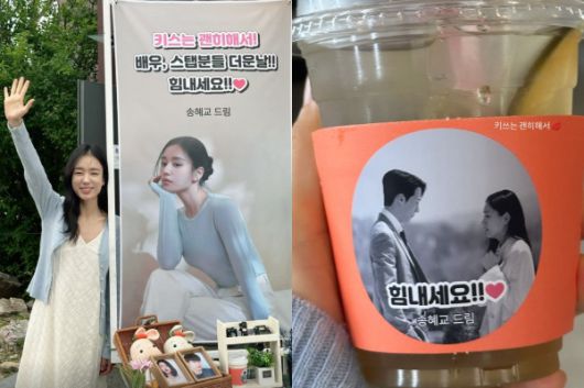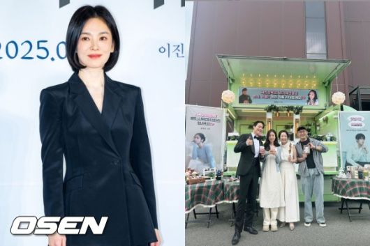 [OSEN=하수정 기자] 송혜교가 후배 안은진, 장기용을 위해서 간식차를 선물했다.