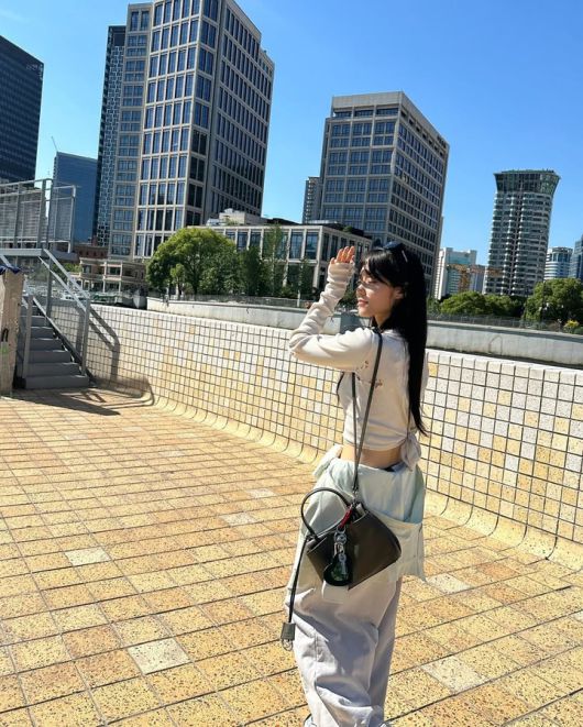 마지막으로, 레이스가 포인트인 크롭탑과 함께 자연스러운 트레이닝 팬츠를 매치한 모습이 담겼다. 여기에 함께 매치한 선글라스가 여성스러운 느낌에 포인트를 더하며, 여름철에 자주 볼 수 있는 실용적이고 스타일리시한 룩을 완성했다.