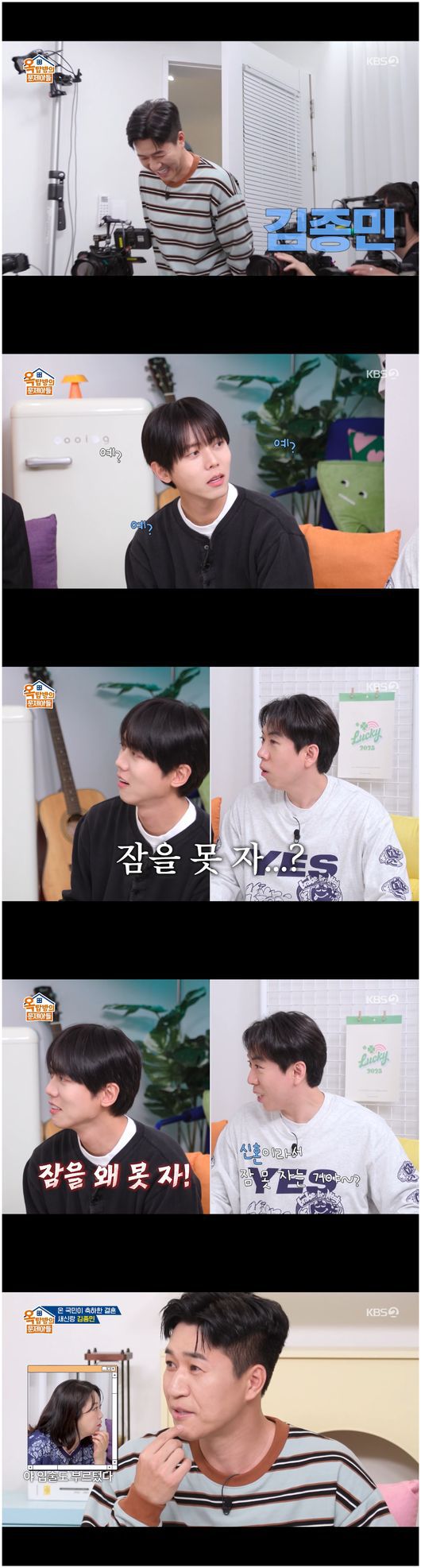 19일 방송된 KBS2TV 예능 ‘옥탑방의 문제아들’에서는 결혼한 지 막 두 달 된 신랑 김종민이 등장했다. 싱글벙글 연신 웃음을 감추지 못하고 등장한 김종민은 결혼식 장면부터 화제가 됐다.