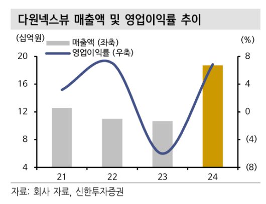 신한투자증권은 20일 다원넥스뷰에 대해 원천 기술 확보를 통한 기술 경쟁력을 기반으로 고객사 및 애플리케이션 다변화에 주목한다고 분석했다. 투자의견과 목표주가는 제시하지 않았다.