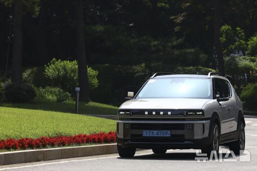 [서울=뉴시스] 김근수 기자 = 지난 18일 서울 강서구 메이필드호텔에서 열린 현대차 더 올 뉴 넥쏘 미디어 시승회에서 차량이 이동하고 있다. 2025.06.20. ks@newsis.com |