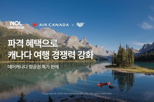 놀유니버스는 캐나다관광청, 에어캐나다와 손잡고 합리적인 캐나다 여행을 지원한다. 오는 7월 8일(화)까지 최대 16% 할인된 몬트리올, 벤쿠버, 토론토 등 에어캐나다 항공권을 NOL 인터파크투어, NOL, 트리플에서 선보인다. 또한, NOL 인터파크투어에서 에어캐나다 항공권을 구매한 고객 대상으로 에어캐나다 메이플 리프 라운지 패스 또는 기내 무료 와이파이 쿠폰 선착순 제공 이벤트를 진행한다.