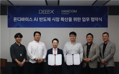 (서울=연합뉴스) 조현영 기자 = 초저전력 온디바이스 인공지능(AI) 반도체 기업 딥엑스는 ICT 교육 전문기관 한컴아카데미와 전략적 업무협약을 체결하고, 딥엑스의 제품 유통을 포함한 공동 사업에 착수한다고 20일 밝혔다.