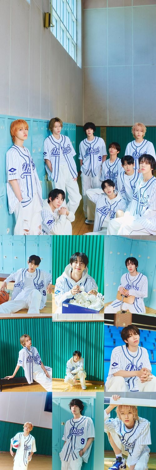 사진은 앞서 스트릿하고 빈티지한 무드의 첫 번째 콘셉트 포토와는 사뭇 다른 분위기다. 이번에는 멤버 전원이 화이트와 네이비 컬러의 야구 유니폼을 착용해 ‘원팀’ 면모를 과시한다.