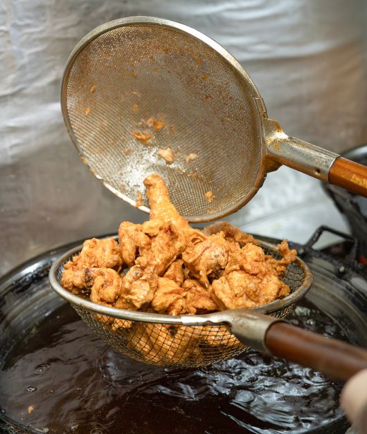 남부 지역에는 돼지기름(라드)를 쉽게 구할 수 있었고, 이를 녹여 닭을 튀겨 프라이드 치킨을 만들었다. 이는 무더운 남부의 날씨를 견디는 데 도움이 되었으며, 오븐에 닭 가슴살만 구워 먹던 백인들에게도 흑인들의 음식을 쉽게 활용할 수 있는 수단이 되었다.