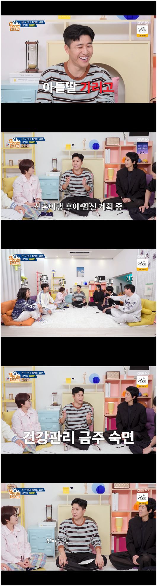 김종민은 결혼한 지 갓 두 달이 되었으나 자녀 계획에 진심이었다. 김종민은 “자녀계획은 일단 둘이다”라고 말했다. 주우재는 “아들딸 안 가리고?”라며 물었으나 김종민은 “딸, 아들 이렇게 원한다. 자녀계획 가린다”라며 신기한 답변을 내놓았다.