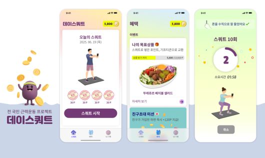 ▶운동하고 선물도 받고=사용자들의 반응이 뜨겁다. “운동과 선물이라는 두 가지 혜택 덕분에 매일 앱을 켜게 된다”, “혼자서는 꾸준히 하기 힘들었는데 앱 덕분에 계속하게 된다”는 평가가 이어진다. 오크우드봄의원 김재영 원장(내과 전문의)은 “데이스쿼트와 같은 짧고 규칙적인 하체 운동은 시니어에게 가장 이상적이며, 건강수명을 실질적으로 연장할 수 있는 방법”이라고 평가했다. 어데이 김승규 대표는 “데이스쿼트를 시니어 특화 운동 앱을 넘어 종합적인 롱제비티(longevity) 플랫폼으로 발전시킬 것”이라고 말했다. 이어 “현재 민간 투자 주도형 기술창업 지원 프로그램인 팁스(TIPS)를 통해 카이스트, 한국공학대학교와 협력해 모바일 헬스데이터 AI 분석 기술을 개발 중이며, 근감소증 예측 솔루션 기업 바이오바이츠와도 업무협약(MOU)을 맺고 신뢰할 수 있는 헬스케어 솔루션 개발에 힘쓰고 있다”고 덧붙였다.