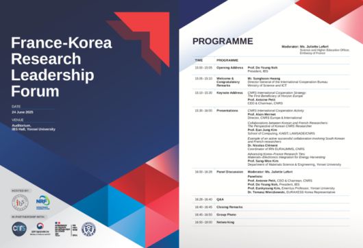 이번 포럼에서는 CNRS 국제협력 전략과 한국-프랑스 간 협력 사례를 공유하고, 공동연구와 인력 교류 확대를 위한 구체적 방안을 모색할 예정이다.
