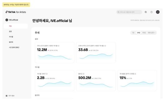 틱톡 포 아티스트는 음원 및 게시물의 반응과 성과, 팔로워의 구성 정보 등 다양한 데이터를 매일 실시간으로 제공한다. 아티스트들은 이를 통해 콘텐츠 전략을 보다 정교하게 조정하고, 팬 커뮤니케이션을 강화하며, 틱톡 내 활동이 음악 커리어 전반에 어떤 영향을 주는지를 명확히 파악할 수 있다.