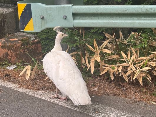 목격된 공작새는 온몸이 흰색 깃털로 뒤덮인 백공작으로 인도가 원산지로 알려져 있다. 공작새 크기는 일반적인 닭과 비슷해 어린 새끼로 파악됐다.
