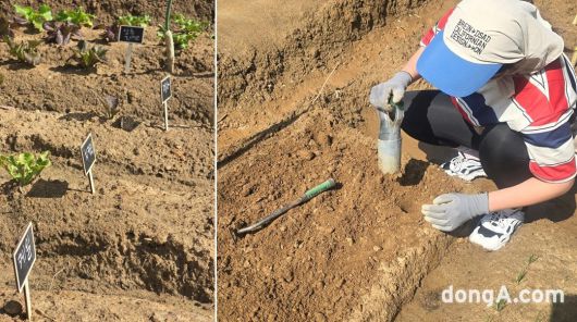 텃밭에서 농작물을 재배하고 있는 권 씨 아내. |