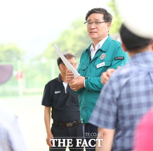[더팩트ㅣ함양=이경구 기자] 경남 함양군은 진병영 군수가 휴천면 목현, 한남, 원기마을 등을 방문해 간담회를 갖고 여름철 폭염 대응태세 점검 및 주민 불편사항을 청취했다고 20일 밝혔다.
