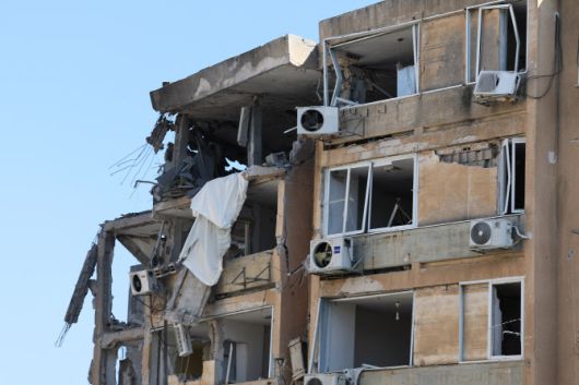 19일(현지시간) 이스라엘 중부 홀론의 한 건물이 이란의 미사일 공격에 타격을 입었다.(사진=AFP) |