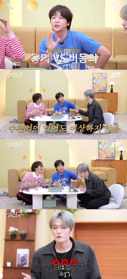 해명을 요구하자 김재중은 "지금까지 일해서 플러스만 했다면 수천억이 있어도 이상하지 않다. 가능한 액수라고 생각한다"라며 "내가 과소비도 하고…"라고 하자