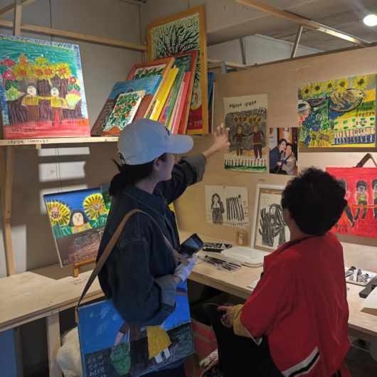 이날 아이유는 소셜뮤지엄 선흘그림작업장을 찾았다. 한 어르신은 그를 보고 "애순이 왔구나"라며 반가움을 표시한 것으로 알려졌다. 환대를 받은 아이유는 입장 규칙에 따라 한 손에 흰 장갑을 끼고 가방을 고르며 어르신들의 작품을 감상했다.