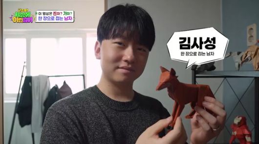 다음으로 소개된 김사성 씨는 한 장의 종이로 복잡한 조형물을 만드는 종이접기 전문가다. 방송에서는 '코끼리와 뱀' 모형을 단 한 장으로 접어내 시청자들의 놀라움을 자아냈다. 그러나 문희준은 "과정을 생략했고, 여러 장을 붙였을 가능성도 있다"라며 의심을 드러냈다.