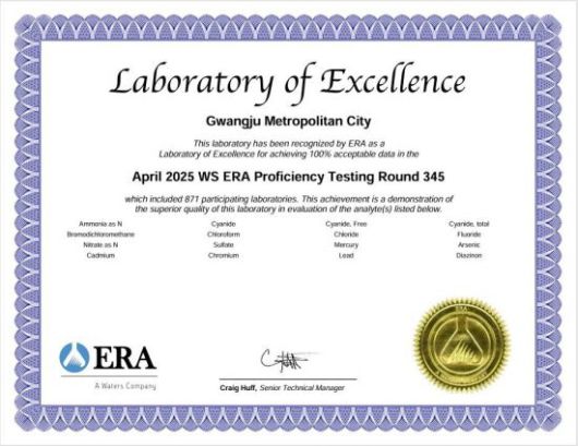 ERA 국제숙련도 인정서. 광주시 제공 |