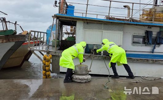 [평택=뉴시스] 평택해양경찰서 경찰관들이 항포구에 정박돼 있는 어선의 계류상태를 점검하고 있다. (사진=평택해양경찰서 제공) 2025.06.20.photo@newsis.com |