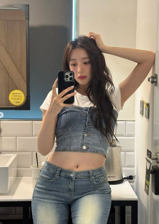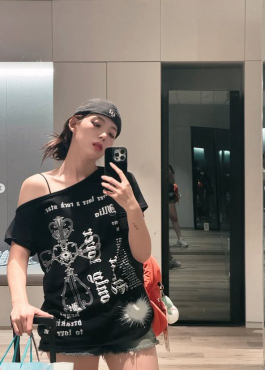 거울 앞에서 찍은 셀카에서는 데님 소재의 상의와 청바지 차림으로 잘록한 허리 라인을 드러내며 청순하면서도 건강미 넘치는 분위기를 연출했다. 또 다른 사진에서는 검은색 오프숄더 티셔츠에 모자를 거꾸로 쓴 채 시크한 표정으로 거울 셀카를 찍으며 ‘힙스터’다운 면모를 과시했다.